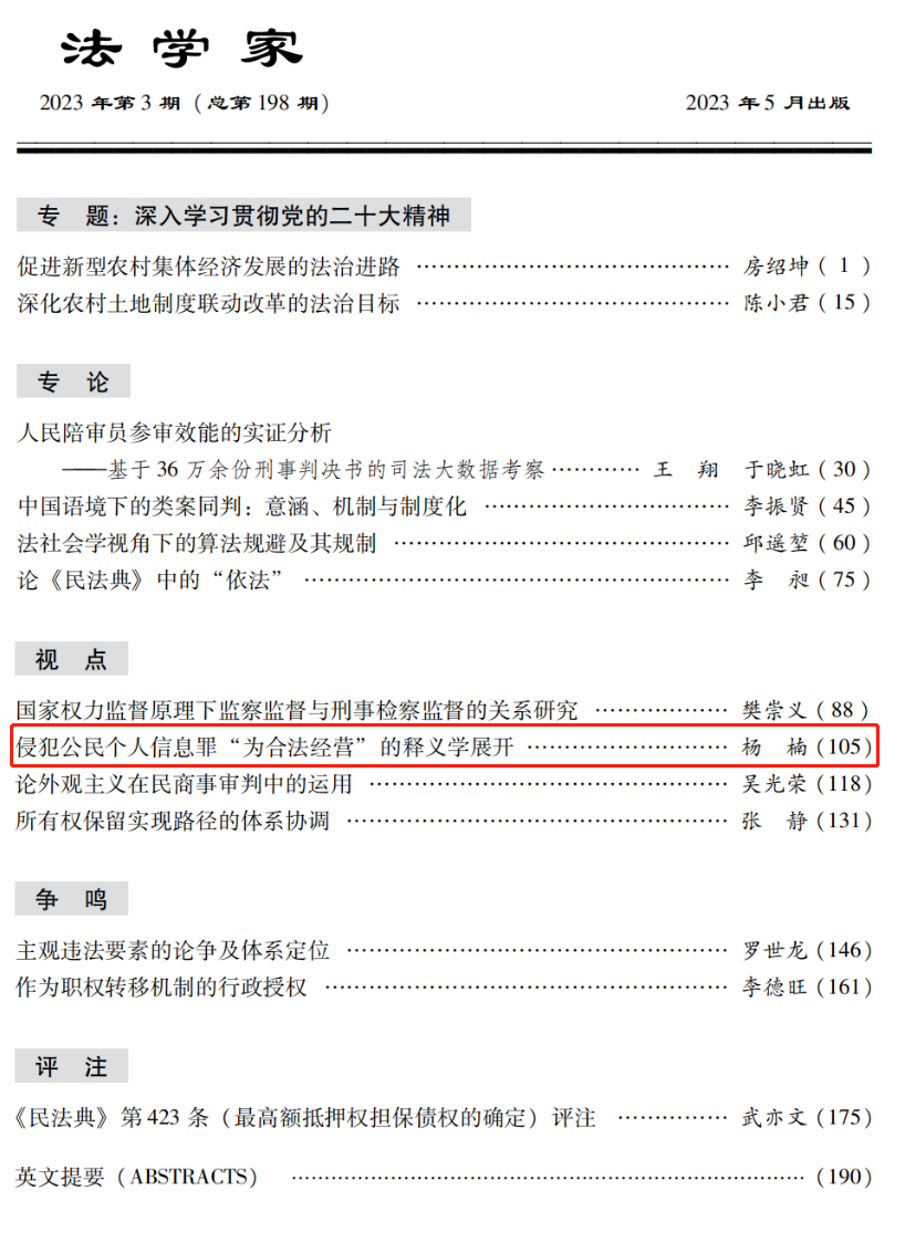 侵犯公民个人信息罪“为合法经营”的释义学展开,法学家,2023(03)