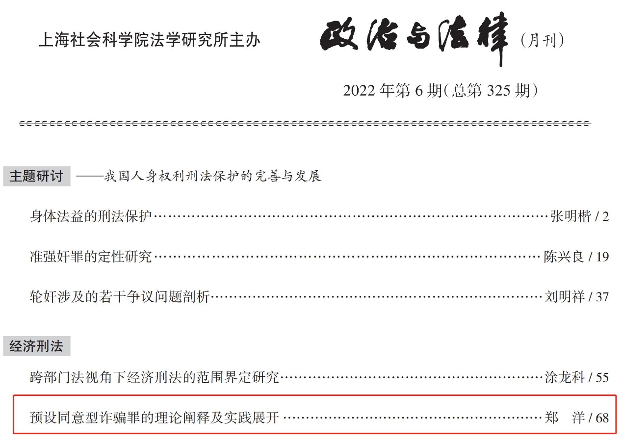 预设同意型诈骗罪的理论阐释及实践展开,政治与法律,2022(06).
