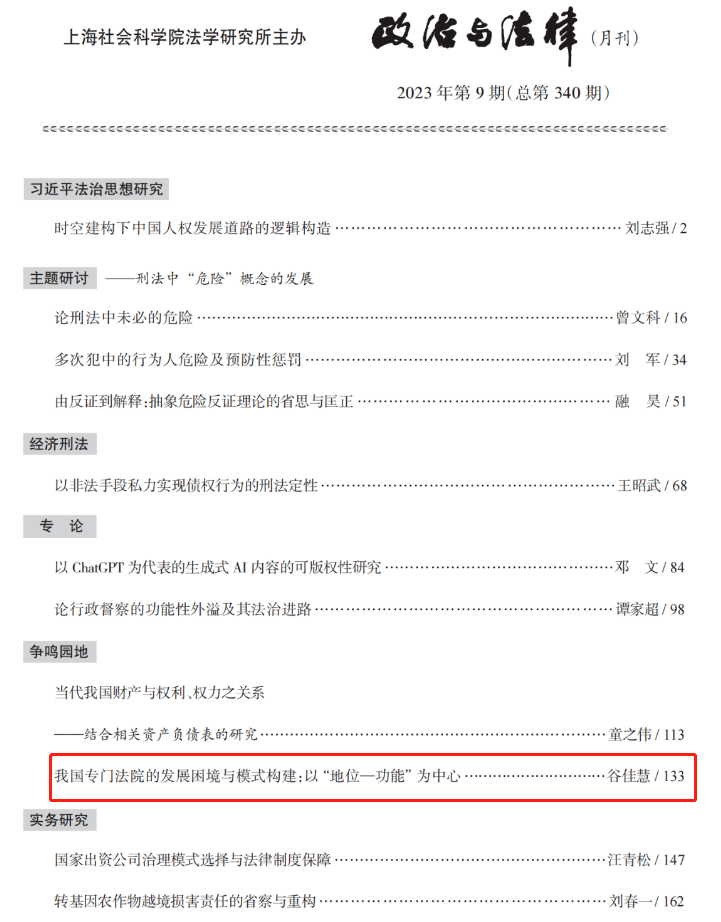 北理工法学院博士后谷佳慧在《政治与法律》发表论文