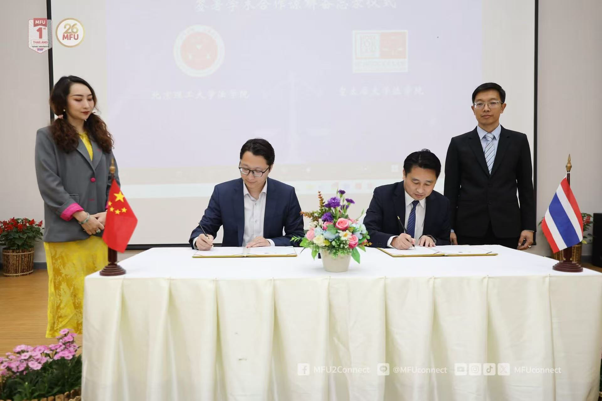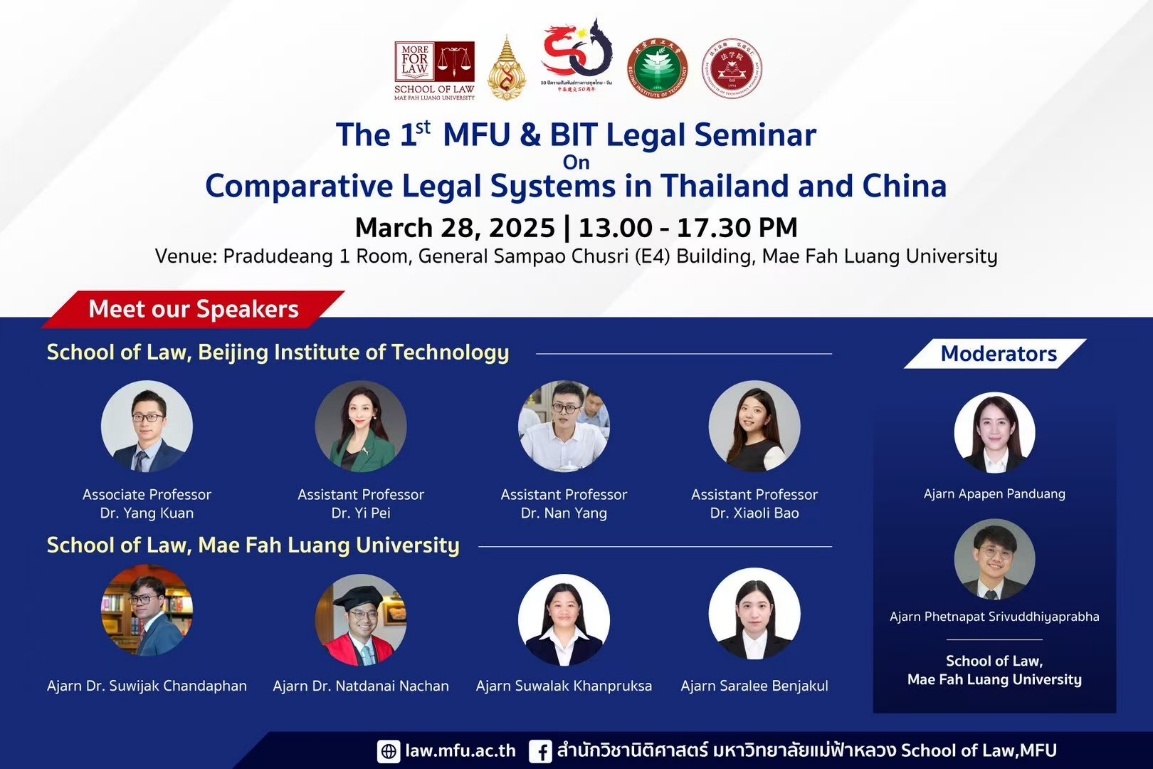 2025年3月,我院与泰国皇太后大学于泰国清莱签署院际合作协议,并参加了“第一届皇太后大学与北京理工大学泰中比较法研讨会”。此次会议以“泰中法律体系比较”为主题,吸引了双方三十余位学者及近百名师生参与,围绕外空资源开发、数据治理、网络犯罪、家事法律改革等前沿议题展开深度对话,为中泰法学研究与实践注入新动能。