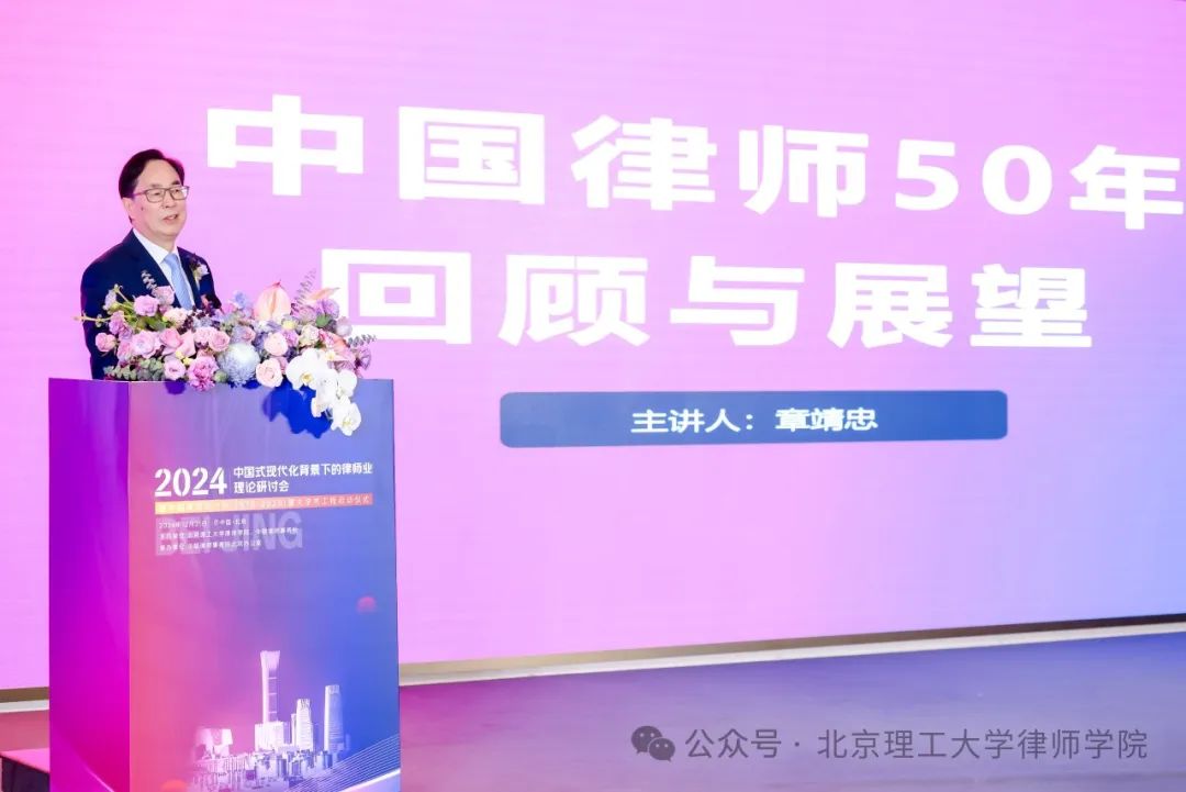 全国律协原副会长、浙江律协原会长、浙江天册律师事务所主任章靖忠就《中国律师五十年:回顾与展望》做了分享,分五个时期回顾了中国律师五十年发展历程。
