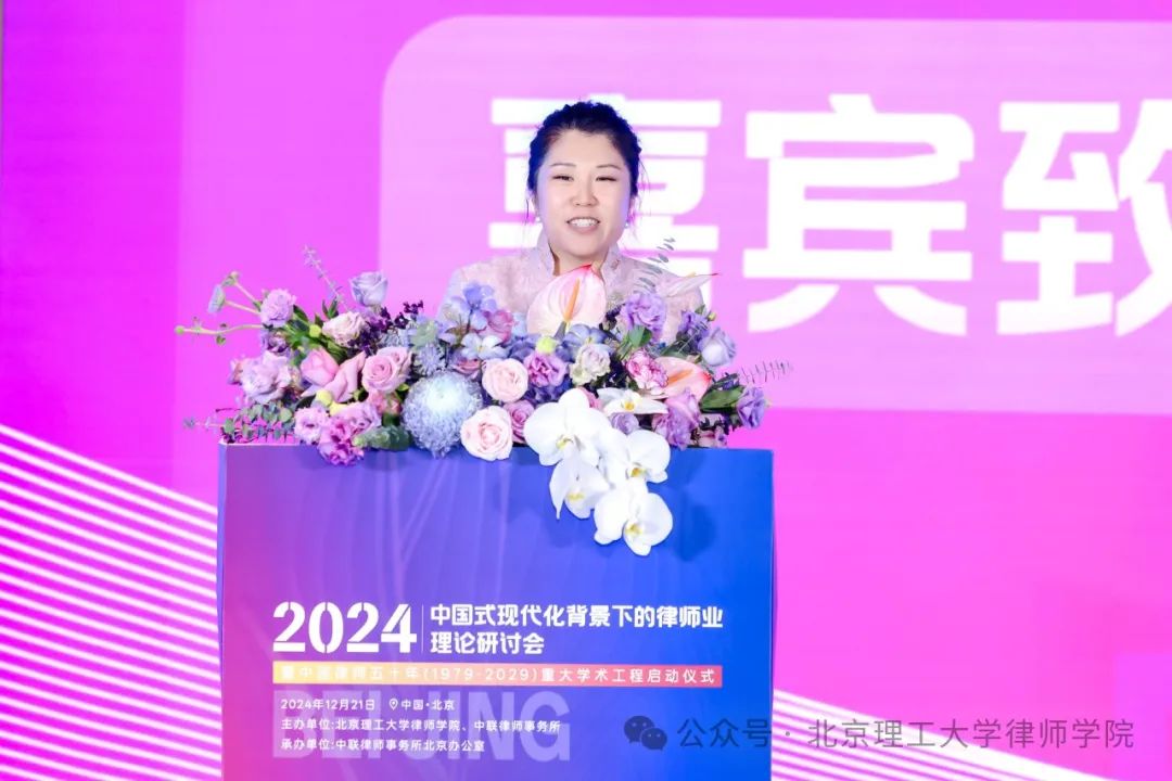 北京市海淀区司法局副局长、区律师行业党委书记韩冰、北京理工大学法学院院长、教授、博士生导师李寿平、中联全国执行委会主任、上海中联律师事务所主任周波、中联全国管委会委员、中联律师事务所北京办公室主任孙晓颖分别致辞,回顾了中国律师五十年来为中国法治建设作出的巨大贡献,并对中国律师五十年重大学术工程提出愿景。