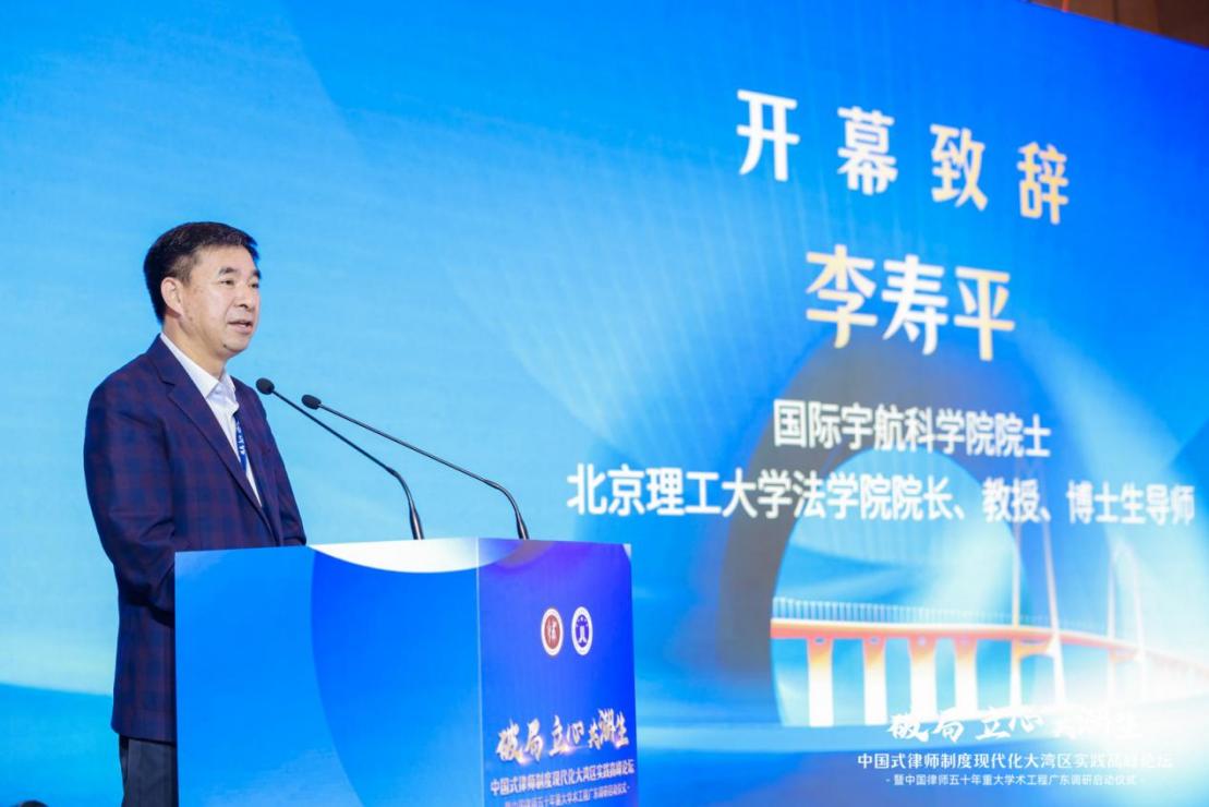 国际宇航科学院院士、北理工法学院院长李寿平教授出席中国律师五十年重大学术工程广东调研启动仪式并致辞。李寿平院长表示,本次学术工程通过全国性实地调研系统梳理律师行业五十年发展脉络,既是行业历史的阶段性总结,也是应对人工智能时代变革的前瞻准备。该项学术工程将通过全面总结行业发展规律,为探索高端法律服务人才培养模式、构建智能时代新型律师服务体系提供重要理论支撑,不仅是传承法治文明的历史使命,更承载着引领行业未来发展的时代责任。