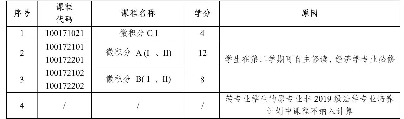 其中,公式中的“课程学分”是指2019级法学专业培养计划中规定的前六个学期开设的必修课程和选修课程的规定学分。“课程成绩”指纳入计算的课程第一次正常考试之成绩(按要求申请课程缓考后,参加首次补考、重考、重修也为第一次正常考试成绩纳入计算;体育课允许重复选课,相同课程非第一次但正常考试成绩纳入计算);必修课、选修课不及格成绩按0分计算;课程成绩评定为优、良、中、及格、不及格时,根据北京理工大学本科生在校学习期间课程成绩五级评分制与百分评分制对应关系,依次按95分、85分、75分、65分、0分折算后纳入计算;国家大学英语四级成绩不参与计算;校公选课不及格成绩不参与计算;学生参加交流学习期间所获得的学分不参与计算。