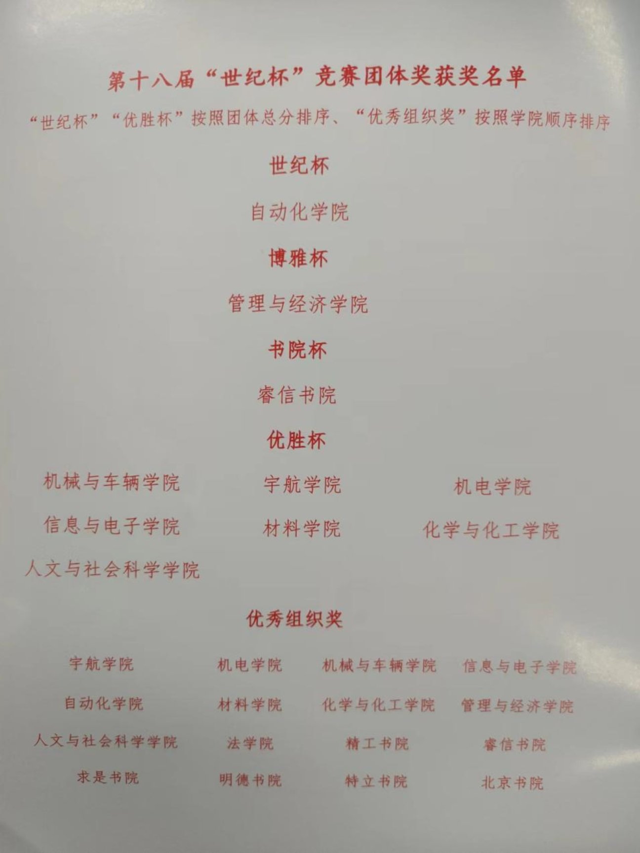在北京理工大学第十八届“世纪杯”竞赛中,法学院获评“优秀组织奖”。