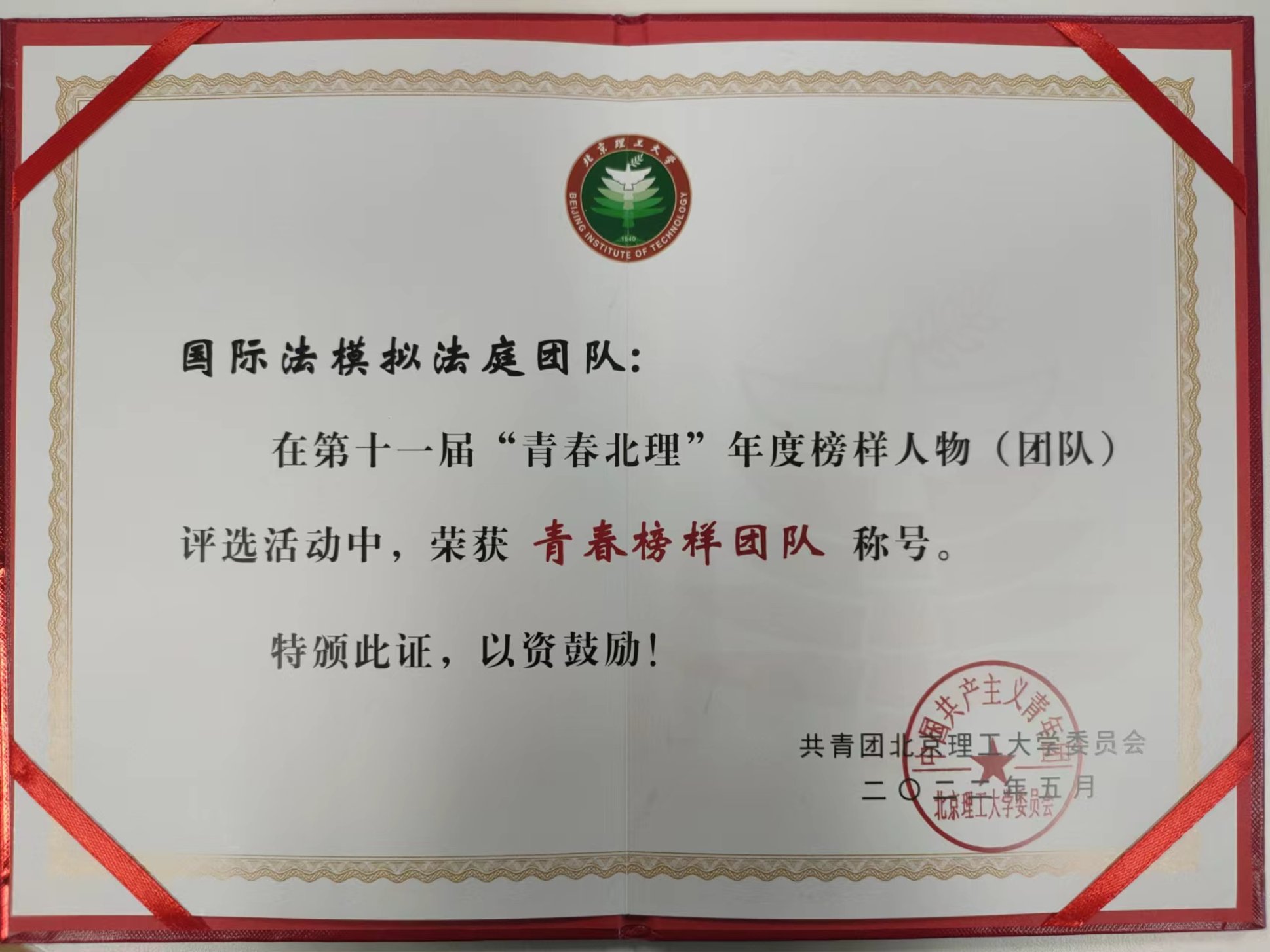 在第十一届“青春北理”年度榜样人物(团队)评选和2021-2022年度共青团系统“五四”评优中,国际法模拟法庭团队获评“第十一届‘青春北理’青春榜样团队”。法律援助中心被授予“优秀社团”称号。法学院刘家源、刘冉、侯思彤、马倩南、杜昊冉获评“优秀团员”。沈蒙、易骁耀、韩亚婷被授予“优秀团干部”称号。