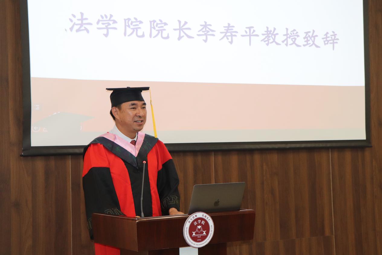 李寿平发表了致辞,代表法学院向圆满完成学业的毕业生致以最热烈的祝贺。李寿平希望毕业生能牢记“坚定、坚守、坚持”三个关键词,以实际行动践行新时代青年的责任和担当,书写无悔于青春、无愧于时代的华彩篇章。坚定信心,勇敢面对前进征程上的一切困难挑战;坚守底线,在充满不确定的时代仍要以信念为基石,坚守法律人的职业底线;坚持科学方法论,终身学习,以创新的思维弘扬公平正义。