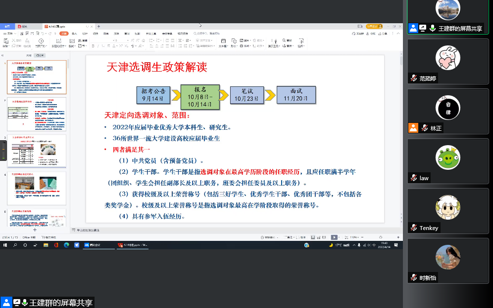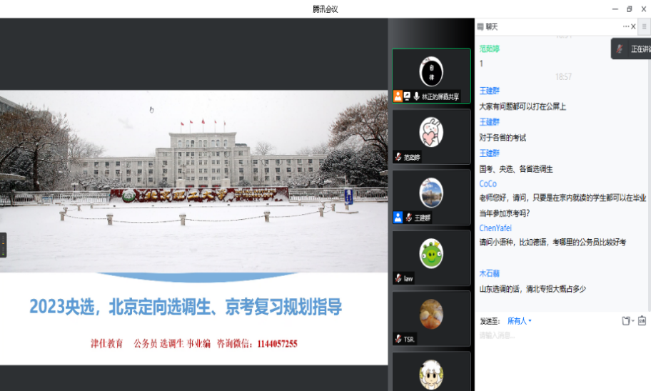 为进一步推进我院学生就业工作,帮助在校生准确把握好就业机会,加强同学们对公务员考试的了解,提升备考水平。4月14日,法学院研究生会携手津仕教育举办了公务员备考指导讲座,本次讲座以线上方式展开,津仕教育名师林正、王建群担任主持人。