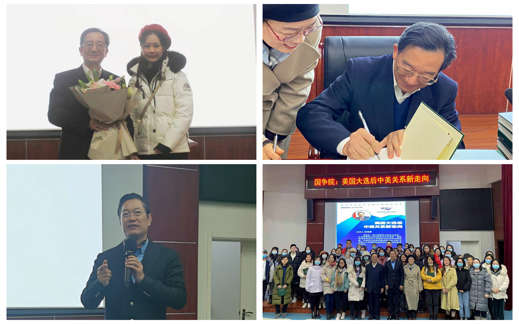 最后,黄院长为老师和同学们签名赠书。杨成铭教授作了总结发言,对黄院长的精彩演讲表示感谢,并鼓励同学们关注国际形势和中美关系,刻苦学习国际法,为未来致力于人类命运共同体建设和维护中美关系的稳定与发展打下坚实的基础。