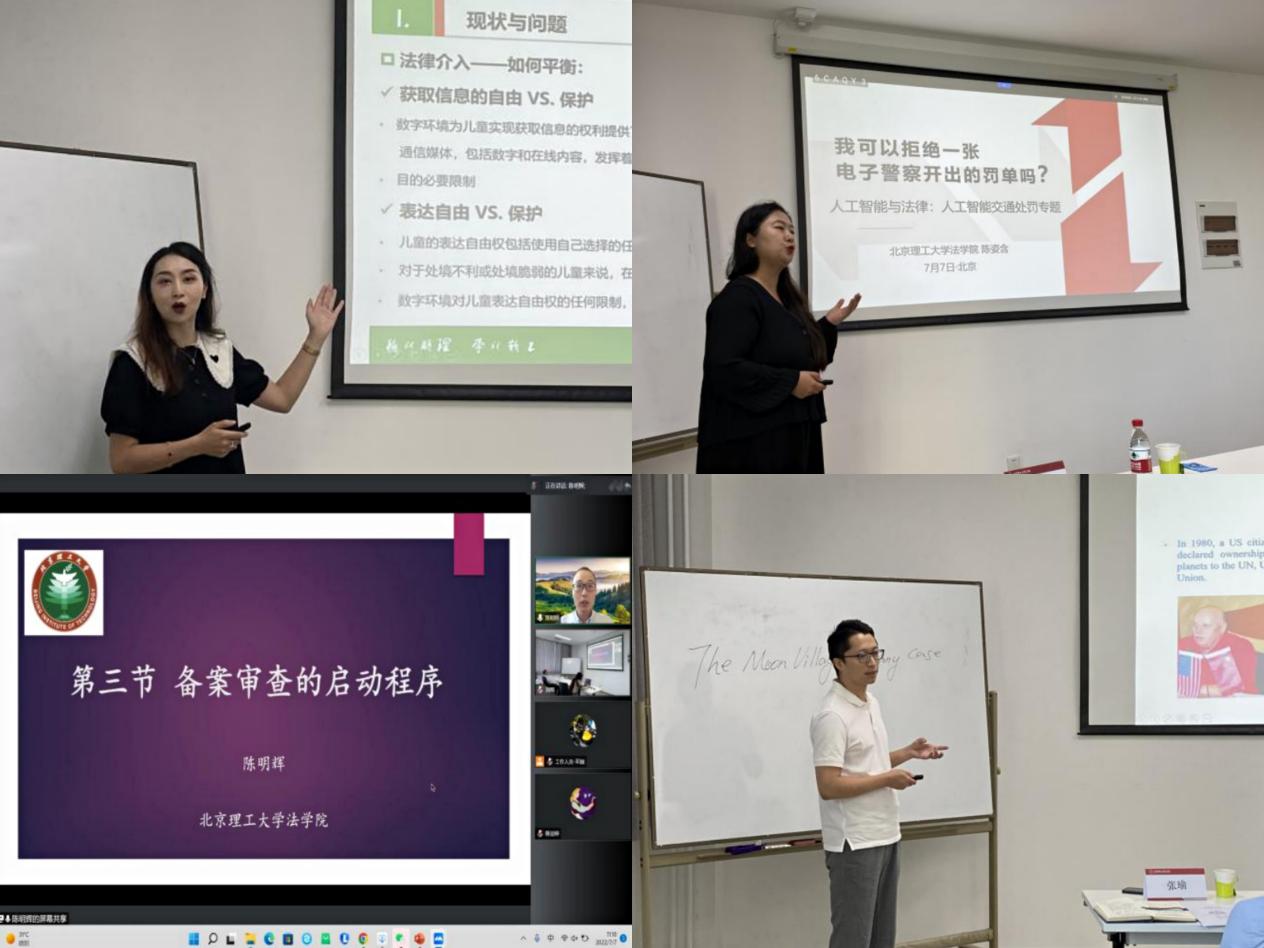 活动过程中,四位青年教师精心准备,认真设计,结合自己的研究方向和教学目标进行选题,陈姿含以《人工智能与法律:人工智能交通处罚专题》为题,裴轶以《未成年人在线信息保护专题》为题,陈明辉以《备案审查的启动程序》为题,杨宽以《外层空间法的基本原则》为题进行现场讲演。在20分钟的现场授课演示中,四位老师以饱满的精神面貌,扎实的教学功底,创新的教学方法,生动而富有感染力的语言表达展示了各自的教学基本功和独特风采。