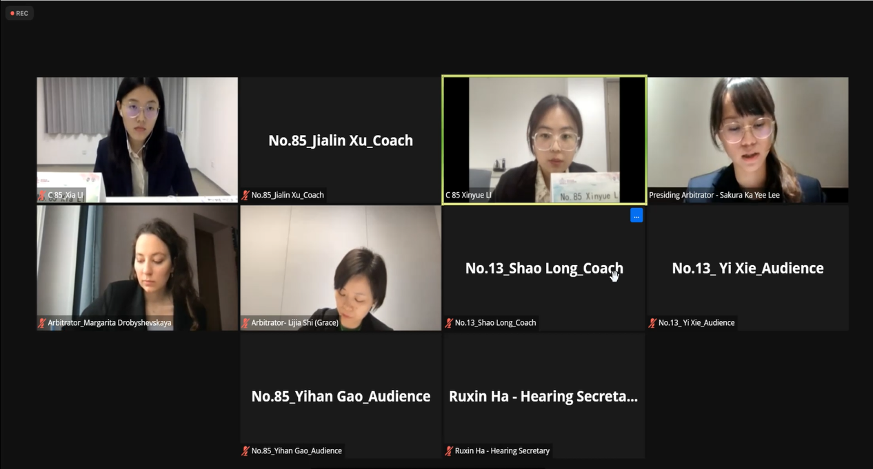 在为期五天的赛程中,北京理工大学法学院代表队经历了四轮循环赛,申请人方辩手李昕岳、李夏,被申请人方辩手李天欣、李夏分别进行了两轮比赛。在赛场上,辩手们克服客观条件的困难,随机应变、侃侃而谈,从程序和实体两个方面进行缜密激烈的辩论,呈现出了四场精彩绝伦的比赛。