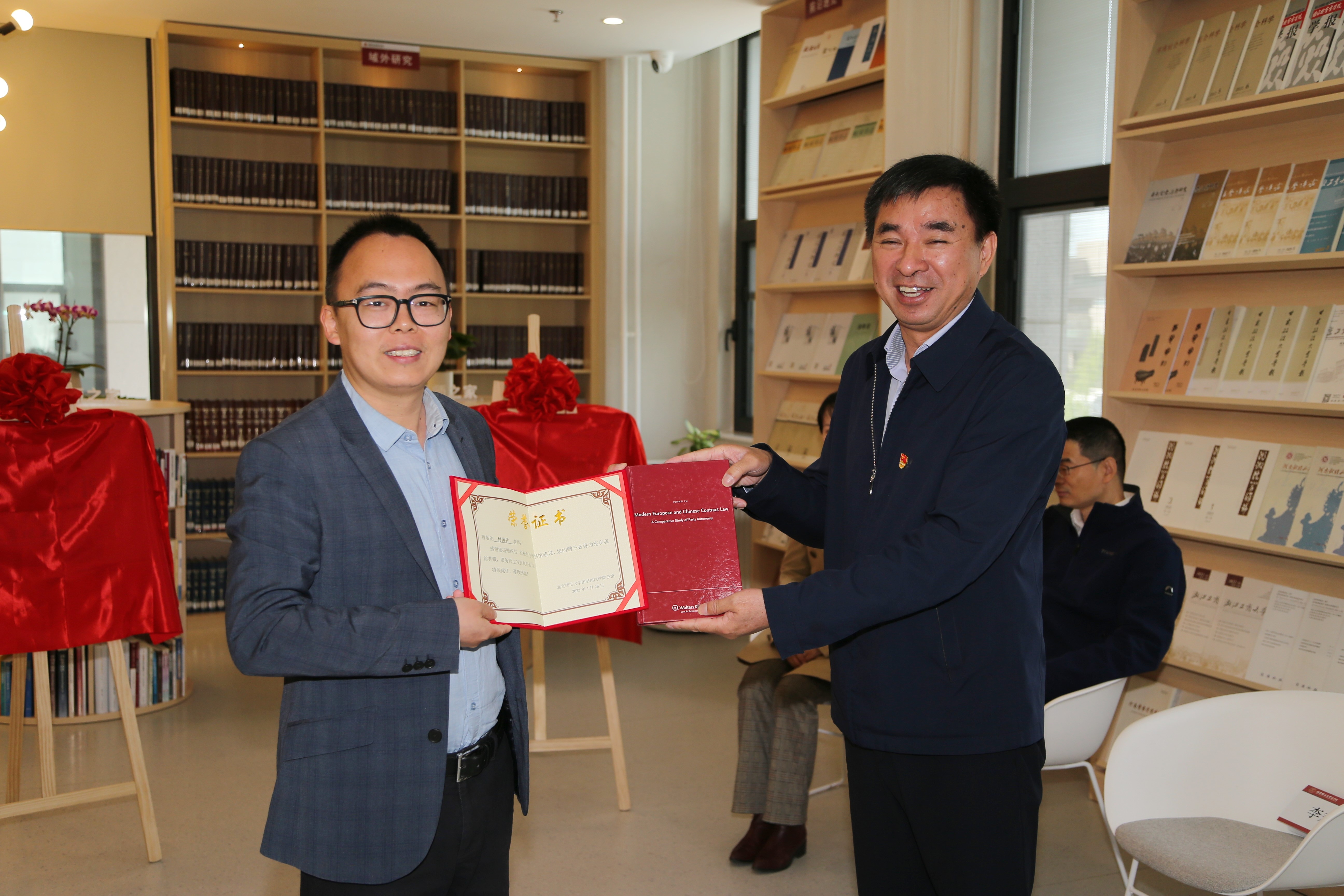 法学院副教授付俊伟作为教师代表向图书馆捐赠个人著作。图书馆建设过程中,法学院教师积极捐献个人专著,支持分馆建设。