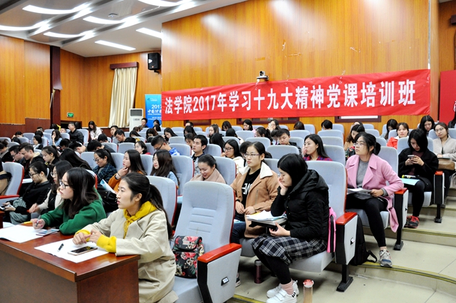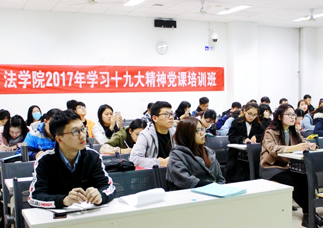 2017年10月28日、29日法学院2017年学习十九大精神第一次党课培训分别于良乡校区理教109和中关村校区7号楼108举办。本次党课面向法学院全体入党积极分子、预备党员、党员,由法学院党校组织,法学院共学会协办,邀请到人文学院党建组织员徐其敏老师主讲。出席本次党课培训的还有法学院团委副书记、兼职辅导员王露梦,法学院团委书记、研究生辅导员聂宁宁和法学院兼职辅导员肖登宇。