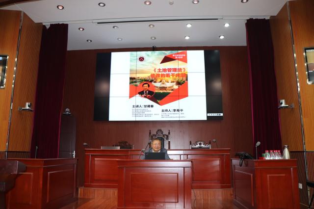 2019年10月18日晚,中国法学会甘藏春副会长应邀在我校法学院模拟法庭为法学院师生作题为“《土地管理法》修改的若干问题”的讲座。北京理工大学法学院院长李寿平主持讲座,法学院百余名师生济济一堂,聆听讲座。