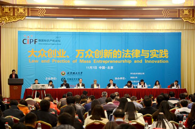 2015年11月7日,由北京理工大学、中国技术交易所、北京强国知识产权研究院共同举办的“2015强国知识产权论坛——大众创业万众创新的法律与实践”在北京友谊宾馆举行。本次大会参与人员包括政府部门主管领导、法院、学术界、企业界以及中介机构人员, 与会全体人士就创新、创业的核心法律问题交流工作经验,同时探讨建设知识产权强国的基本路径和措施。