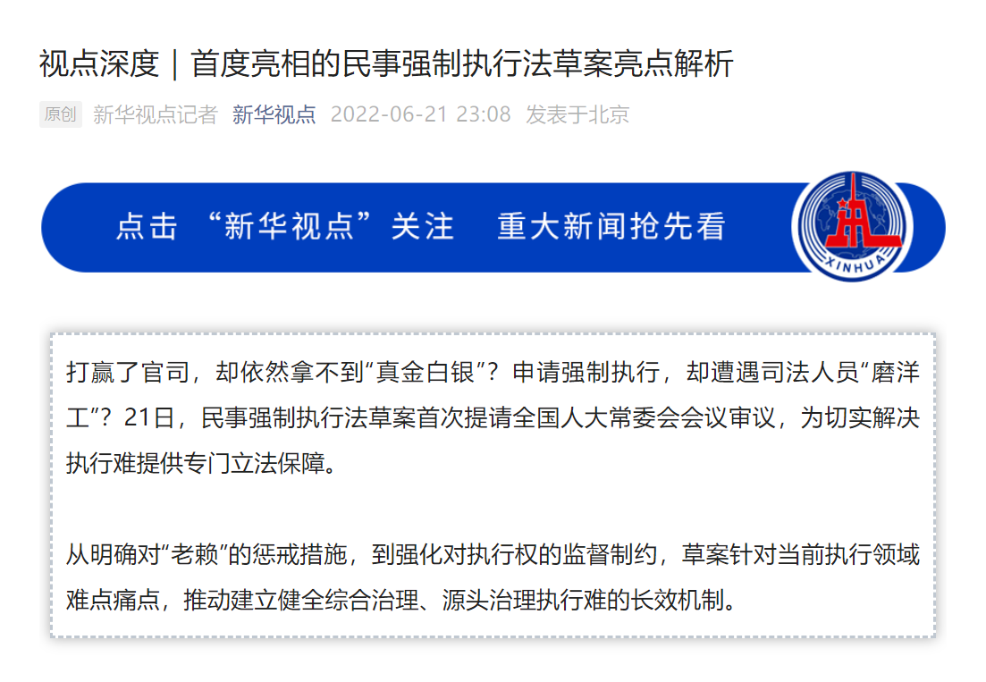 原文标题:首度亮相的民事强制执行法草案亮点解析
