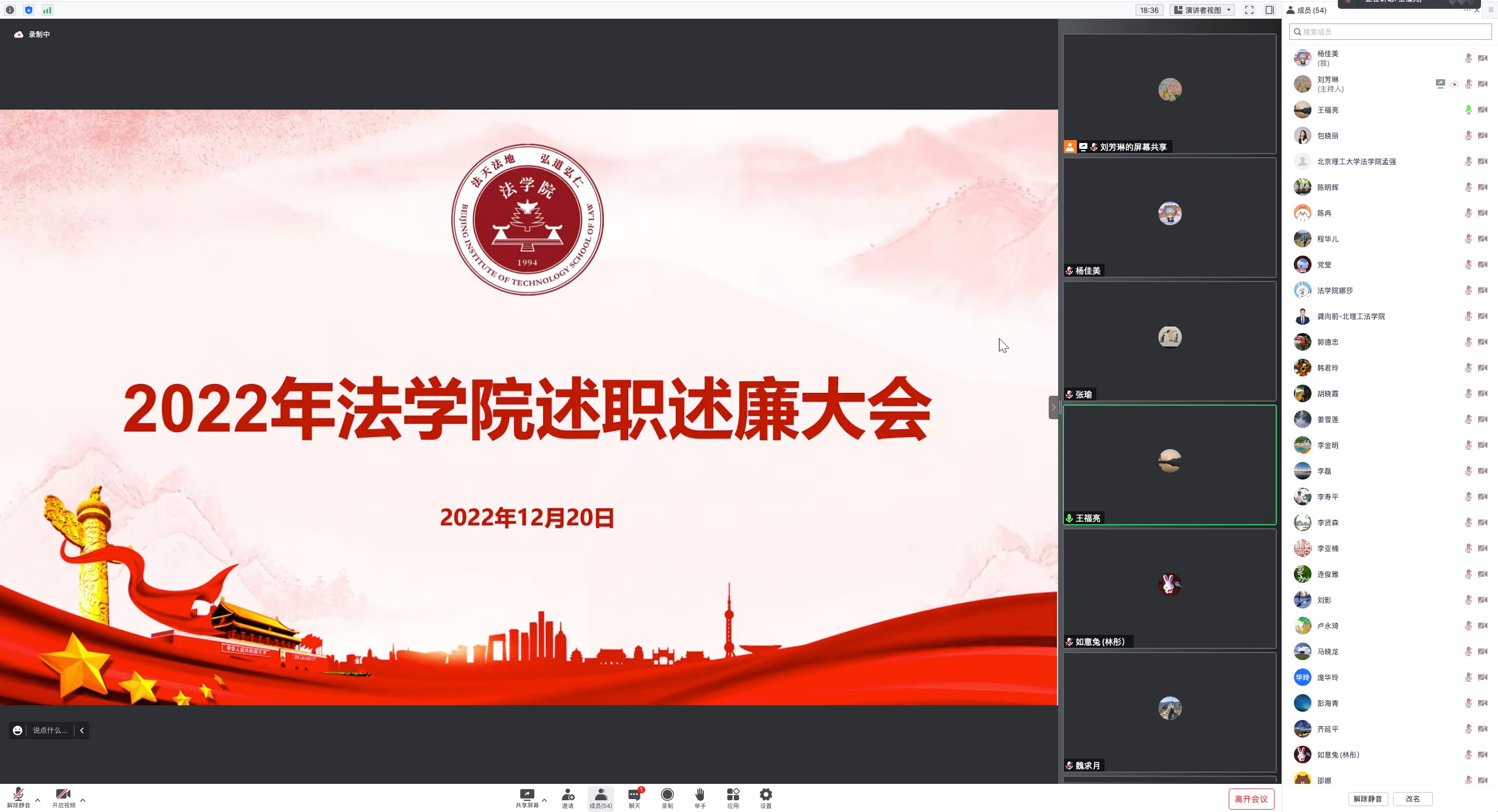 按照学校年度考核工作部署,12月20日下午,法学院2022年度述职述廉大会以线上方式召开。法学院领导班子、全体教职员工出席本次大会。会议由法学院副院长王福亮主持。此次会议主要由法学院领导班子进行公开述职述廉,并进行民主测评。