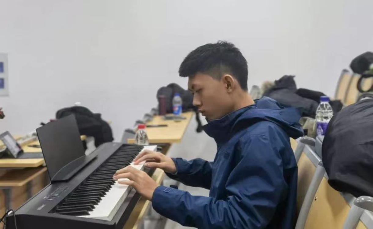 12月5日中午1点半,录制正式开始。随着小提琴和钢琴的前奏响起,同学们带着自信的笑容,用嘹亮的歌声唱响了中华民族自强不息的伟大精神和阔步向前的豪迈气概。