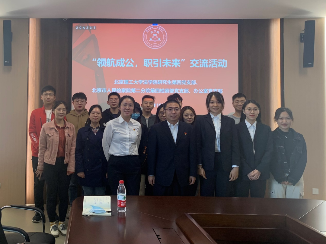 为贯彻落实党中央、国务院“稳就业”“保就业”决策部署,为毕业生搭建交流平台,助力毕业生实现更充分的就业,法学院将毕业生就业工作作为“我为群众办实事”的重要内容。2021年10月12日下午1:30,法学院研究生第四党支部联合北京市人民检察院第二分院第四检察部党支部、办公室党支部于北京理工大学(良乡校区)东区文三楼北廊 306-307 会议室开展了“领航成公,职引未来”交流活动,邀请北京市人民检察院第二分院的工作人员为法学院学生讲解检察院工作职责和运行架构,以及公务员考试备考经验和法学类公务员发展前景与待遇。