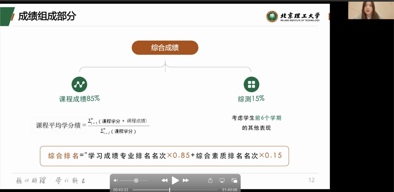 之后,杨佳美老师详细说明“法学院2022年推荐优秀应届本科毕业生免试攻读研究生课程成绩计算细则”,让学生清晰了解“学习成绩是推免的最主要条件”,同时对转专业等特殊情况解答学生的疑问。