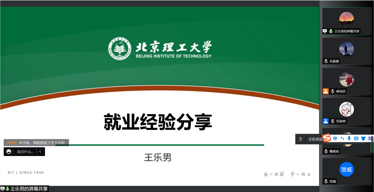 2020级法学硕士王乐男同学介绍了航天类企业的求职特点,如校招难度较大、更倾向于社招、看重简历与求职者的突出技能等。他建议同学们在求职时应将视野放宽,针对心仪的岗位提前做好准备,鼓励想去律所的同学多积累实习经历,想去企业的同学多搜集信息、多投递简历,同时也为同学们推荐了各类就业信息获取渠道。