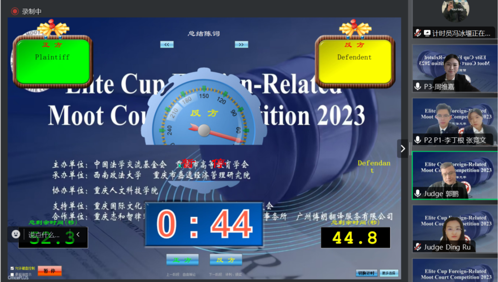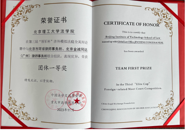 涉外法治人才培养是新时代法学教育的当务之急,也是北理工法学院人才培养的鲜明特色。为壮大和储备涉外法治人才、提升涉外法治人才的外语应用能力和法律服务能力、增进法学院校与专业法律服务机构之间的交流、推动完善法学专业实践性教学,由中国法学交流基金会和重庆市高等教育学会主办、西南政法大学国际法学院、重庆市嘉遁经济管理研究院承办的2023年“领军杯”涉外模拟法庭全英辩论赛于10月21-22日、11月5日以线上、线下相结合的方式顺利举行。