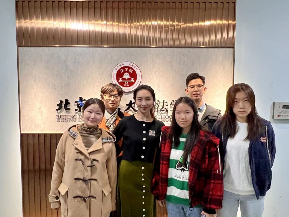 图中为团队律师李维周(左一)、法学院2022级本科生李丁根(左二)、经管学院2020级本科生薛辰瑞(左三)