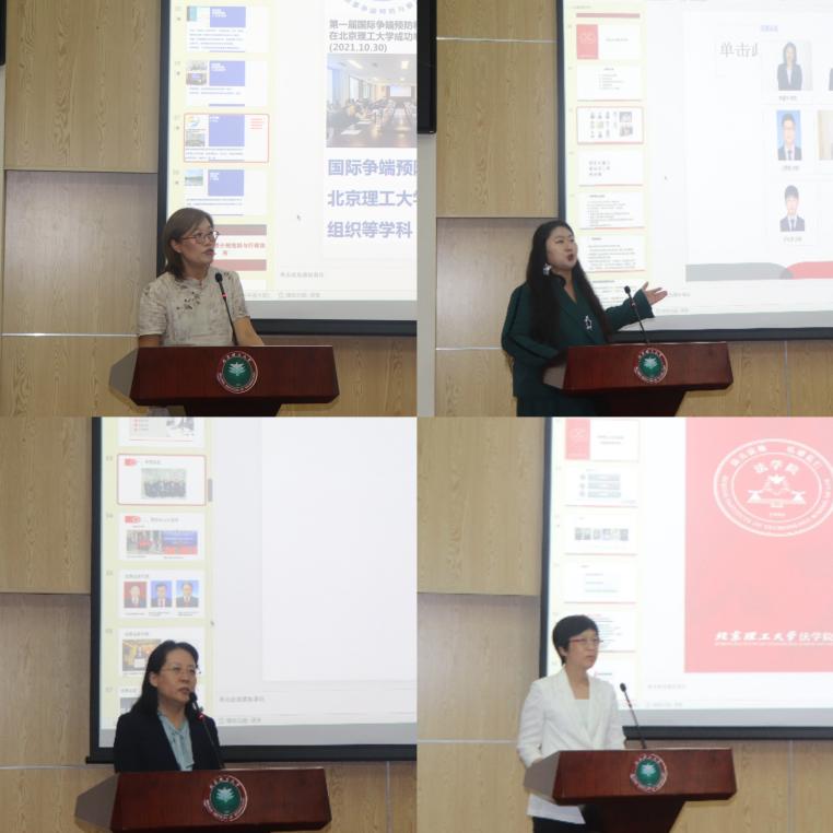 法学院各研究所所长、平台负责人李华、陈姿含、赵秀梅、李金明、于鹏分别介绍了国际法所、宪法与行政法所、民商法所、刑法所、诉讼法所各自平台的师资、科研、育人等方面的建设情况。