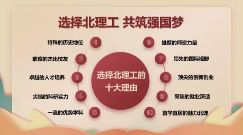两场会议的形式类似,分别先由裴轶和党莹做主题演讲。演讲指出,北京理工大学具有特殊的历史地位、璀璨的杰出校友、卓越的人才培养、尖端的科研实力、一流的学科优势、雄厚的师资力量、领先的国际视野、顶尖的创新实践、高端的就业深造、宜居宜学的魅力校园等十方面的优势。演讲强调,北京理工大学各方面的优势,适合优秀学生的多元发展。