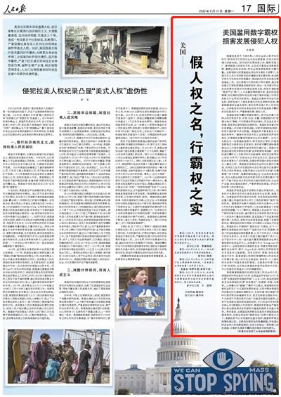 原文标题:美国滥用数字霸权损害发展侵犯人权