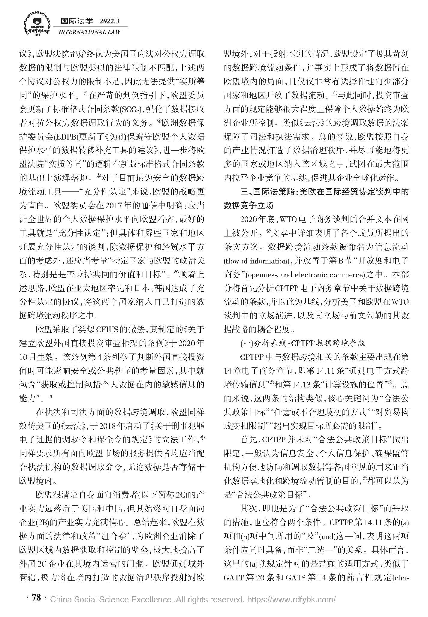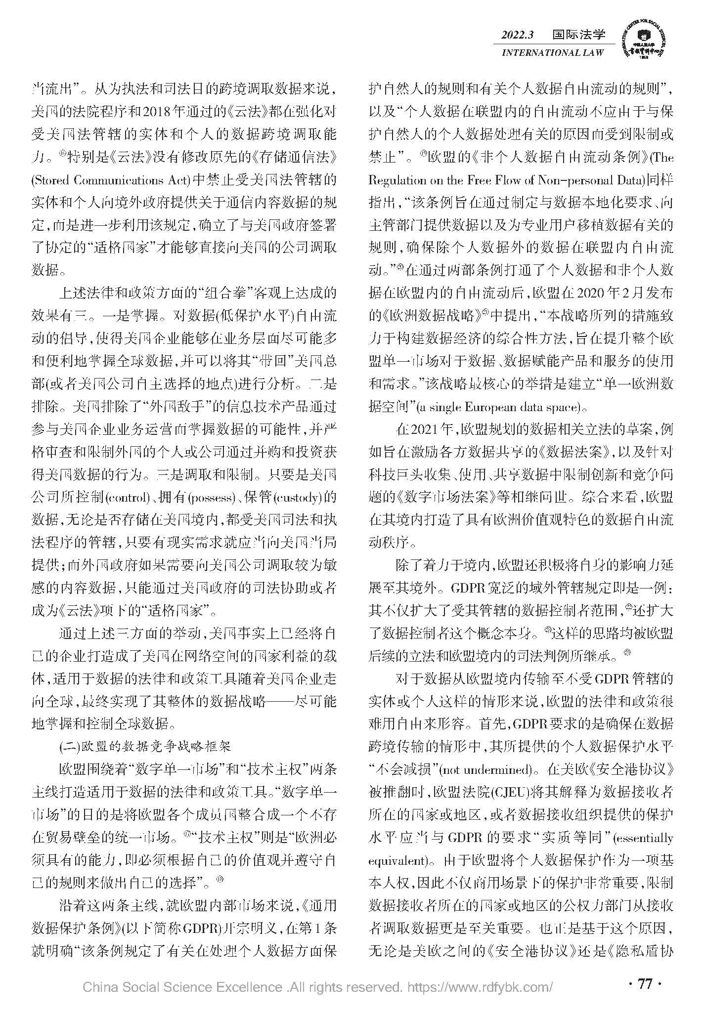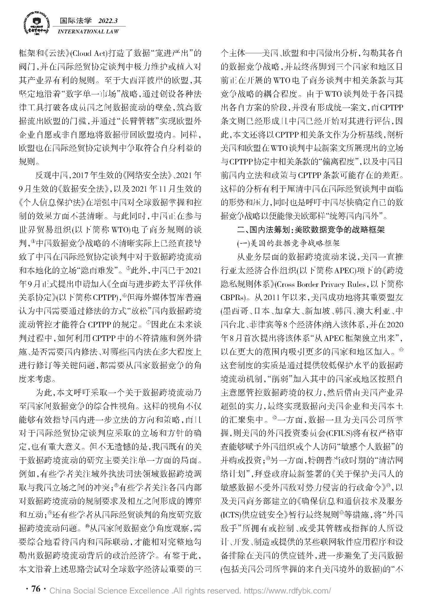 数据竞争的美欧战略立场及中国因应——基于国内立法与经贸协定谈判双重视角,中国人民大学复印报刊资料《国际法学》2022年03期全文转载。(原文载于《国际法研究》(京),2021.6.69~81)