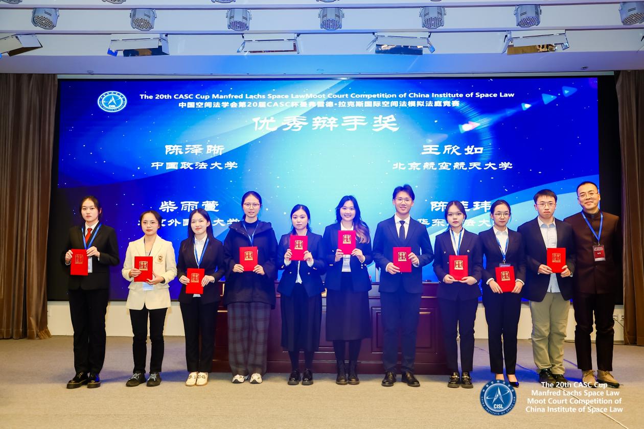 2023年12月9日-12月10日,由外交部条法司指导、中国空间法学会主办的第20届CASC杯Manfred Lachs国际空间法模拟法庭竞赛落下帷幕。参赛队伍共有来自北京理工大学、北京大学、中国政法大学、北京航空航天大学等全国30所高校。经过激烈角逐,我校代表队荣获团体二等奖,王国语老师荣获最佳书状指导奖,钟轶可同学荣获优秀辩手奖。