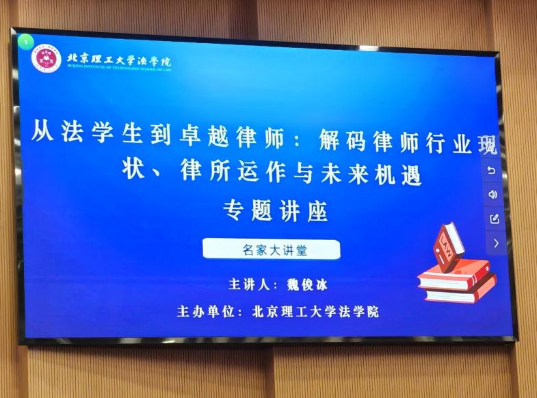 2025年9月11日,北京理工大学法学院于文萃楼圆形报告厅举办“名家大讲堂”暨入学教育系列讲座,以学生就业规划为导向,帮助学生提前了解职业现状、规划职业路径。本期讲座以“从法学生到卓越律师:解码律师行业现状、律所运作与未来机遇”为题,特邀北京市海淀区律师协会副会长、北京市信凯律师事务所主任律师、创始合伙人魏俊冰担任主讲人,由法学院党委副书记、副院长马晓龙主持。