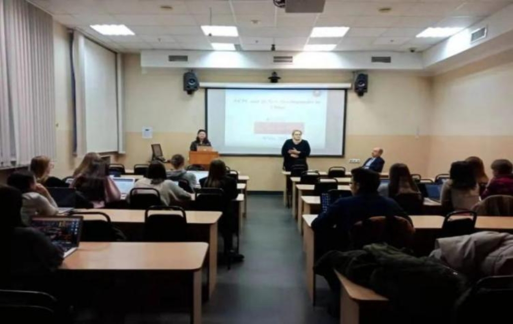 2019年11月28日,彭海青教授在圣彼得堡大学法学院为中国法专业的俄罗斯学生授课。
