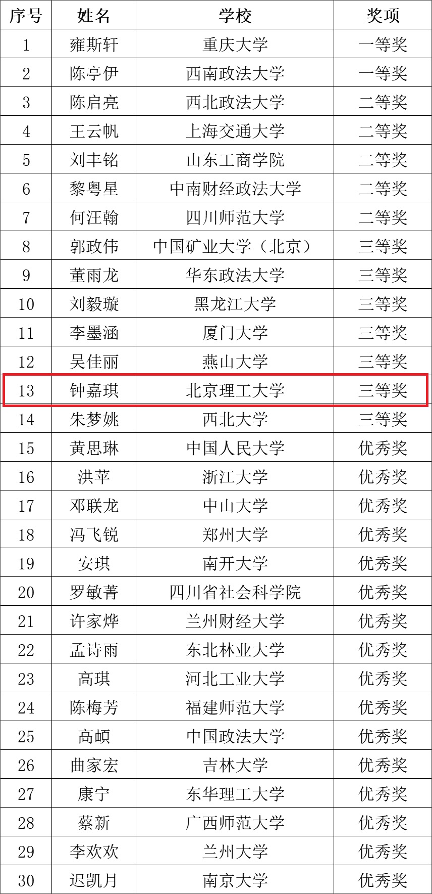 北理工法学院钟嘉琪同学荣获第八届(2025)法律专业学位研究生法律文书写作大赛三等奖