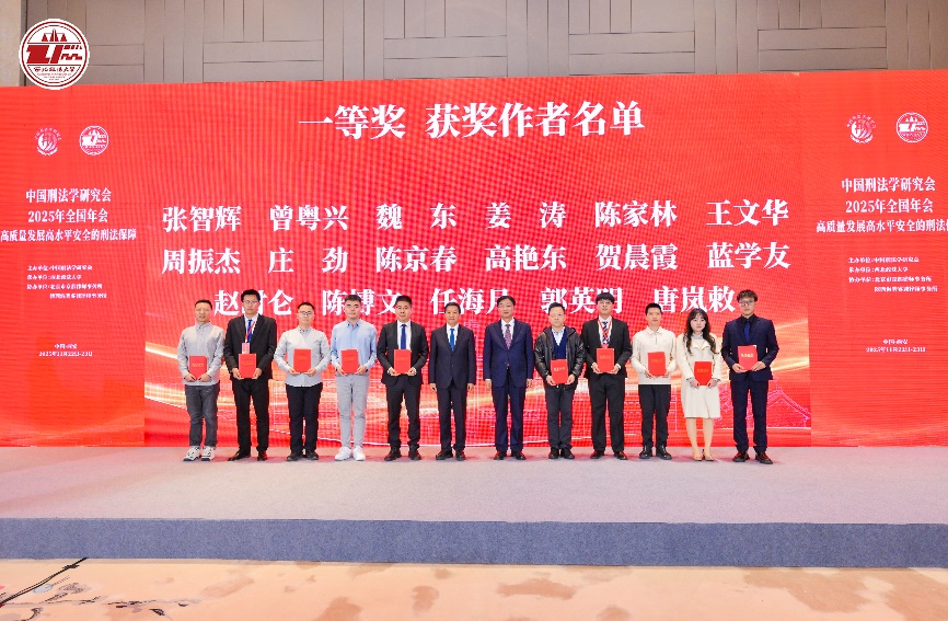 在所有主旨发言环节结束后,大会进行了年会优秀论文颁奖典礼,我院曾粤兴教授的参会论文获得中国刑法学研究会2025年全国年会优秀论文一等奖、陈冉教授的参会论文获得中国刑法学研究会2025年全国年会优秀论文二等奖。