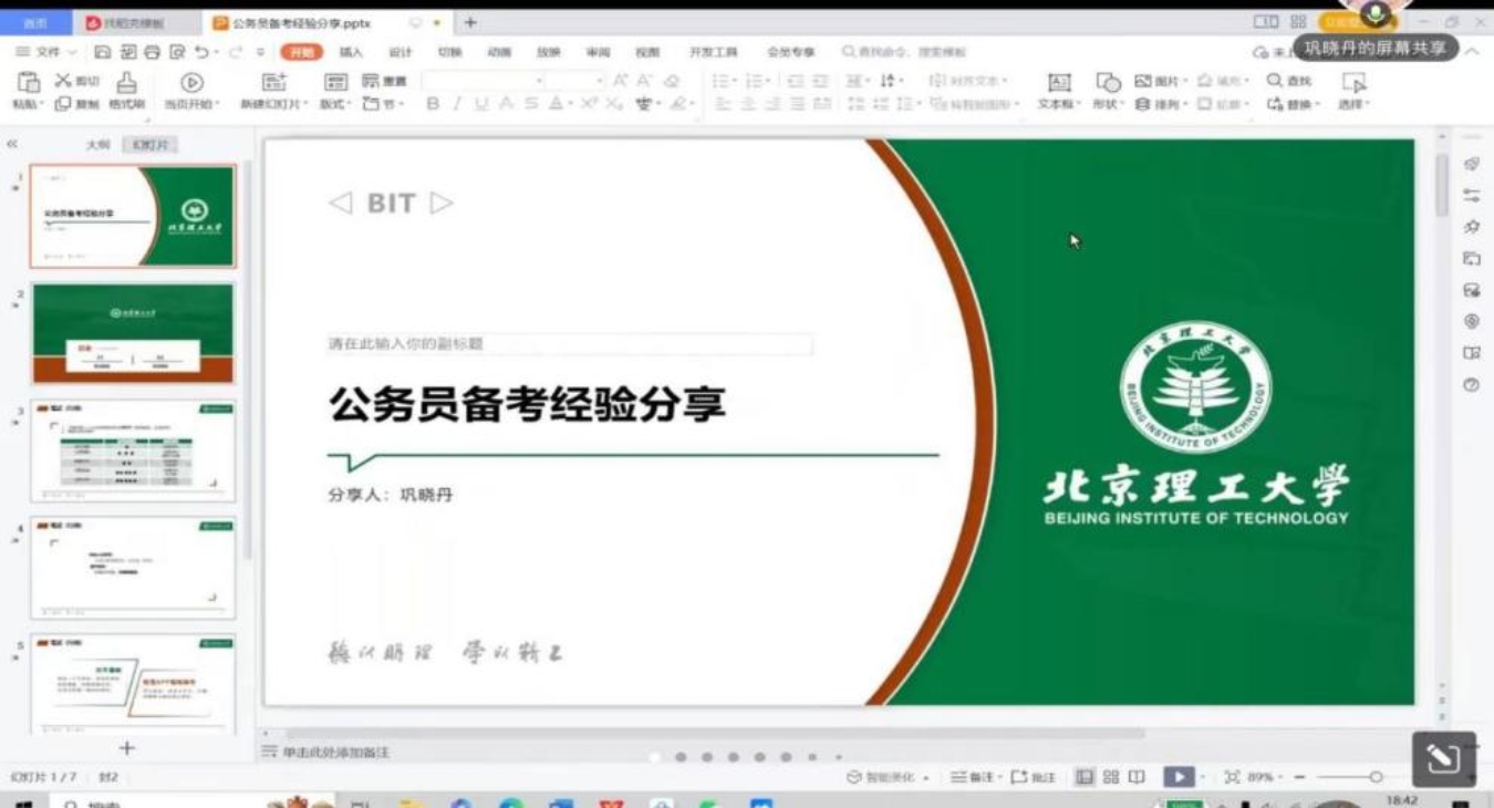 第六位分享人是于坤,现已考入北京市第二中级人民法院。于坤从笔试和面试两方面进行分享。首先,关于笔试的备考安排,他强调“战线”不要过长,否则后期会很疲惫。听网课的过程中要做笔记,避免后期因为知识点遗漏回看网课而浪费时间。其次,做题时不要犹豫,要学会取舍,遇到反复看仍不确定的题应跳过,把时间留给会做的题目。再次,所有的考试都要坚持到最后,不管是笔试还是面试都尽量参加,即使笔试自我感觉很差也不要放弃,因为分差可能会很小,且调剂和递补的机会有很多,所以不到最后结果都是未知的。最后,备考过程中一定要有良好的心态,不要过于焦虑,公考是一场持久战,既然选择了这条路就要走到最后!