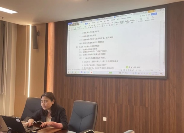 随后,法学院梁栋、肖鹏、刘毅、廖仕梅、李亚楠、姜雪莲等老师分别围绕平台劳工过劳之殇的法律治理、贪污受贿犯罪终身监禁的合宪性基础与适用规则、比较法视野下的中国式法治现代化、税务约谈制度的困境与完善、司法调解独立化的程序构建与功能升级、遗嘱信托与继承制度的张力等主题进行论文介绍。