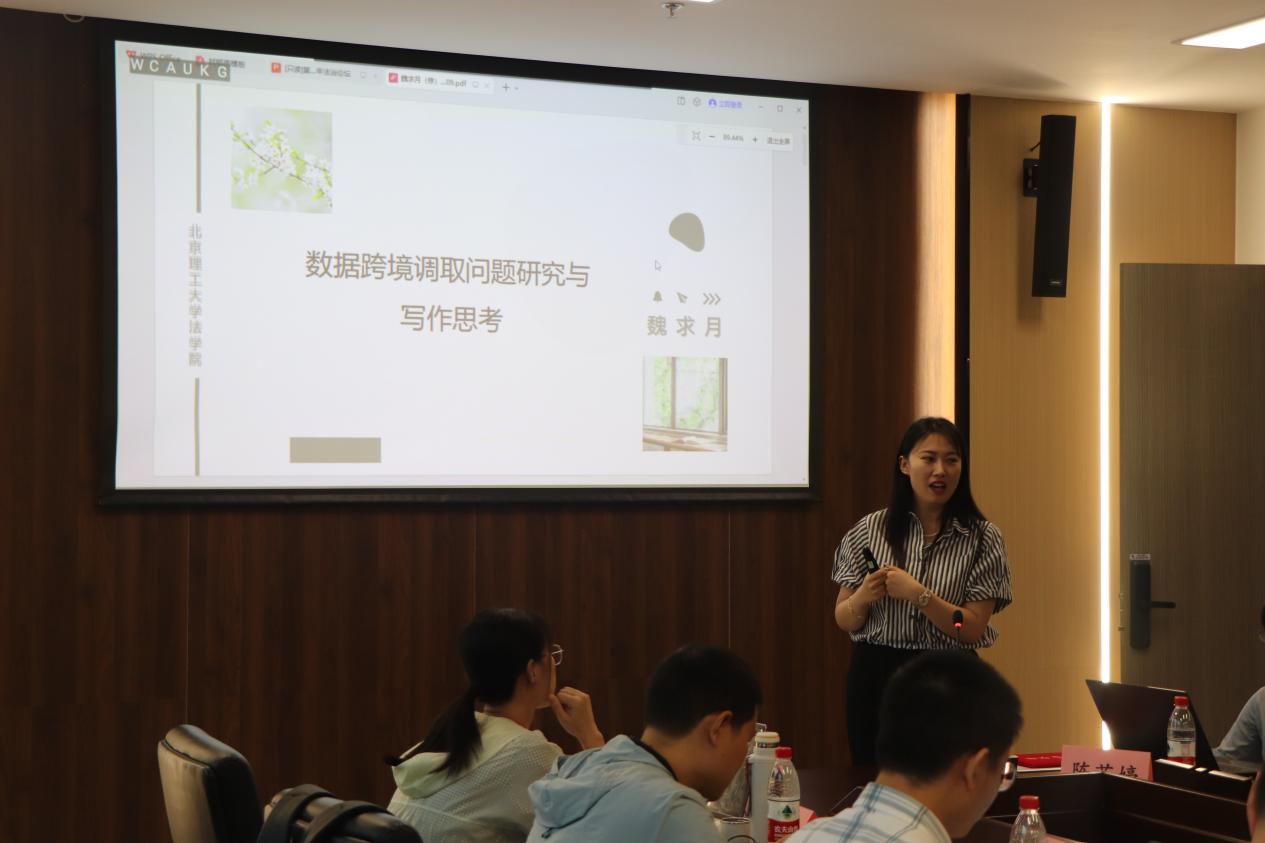 在主旨发言阶段,北京理工大学法学院讲师魏求月以“数据跨境调取问题研究与写作思考”为题进行了发言。中共中央党校政治和法律教研部教师徐信予就“流量垄断的生成逻辑”展开了分享和讨论。